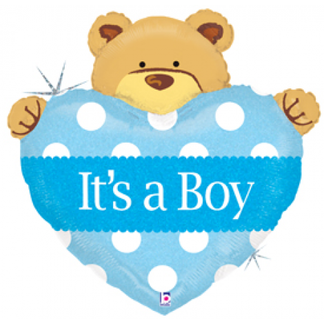 Baby Boy Big Heart Bear Foil Balloon - 39.5"W x 40"H