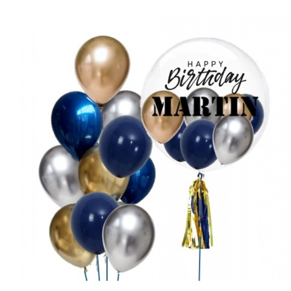 Personalized Bubble Balloon Bouquet (Navy Blue+Silver+Gold)