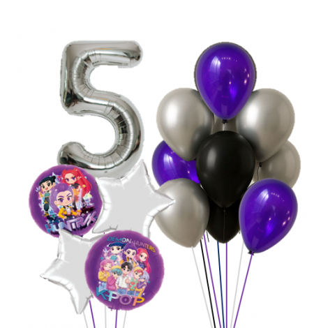 Kpop獵魔女團Huntrix & 銀色數字鋁質氣球組合 (連氣球座)